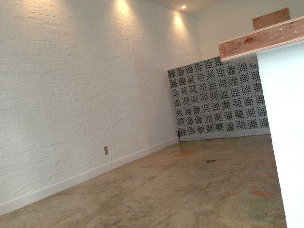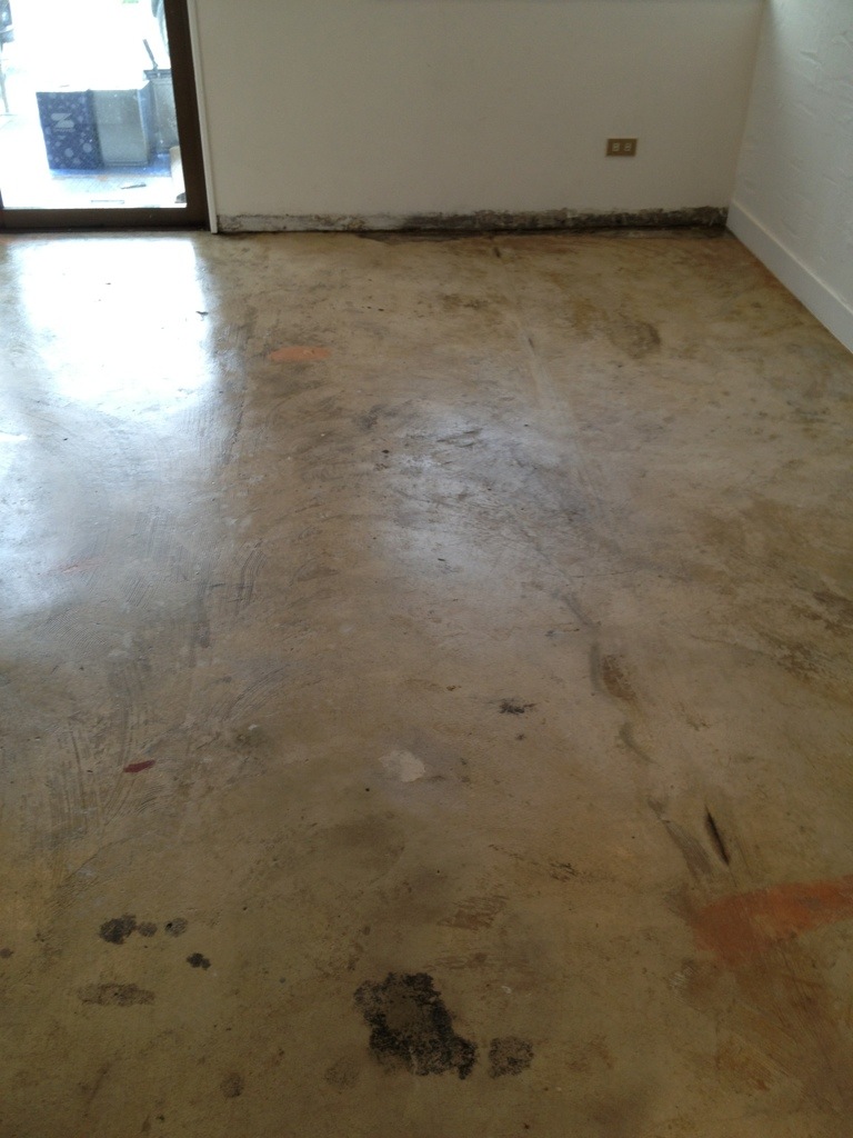 この建物の歴史や、以前の床の接着剤の跡がそのまま出てます。