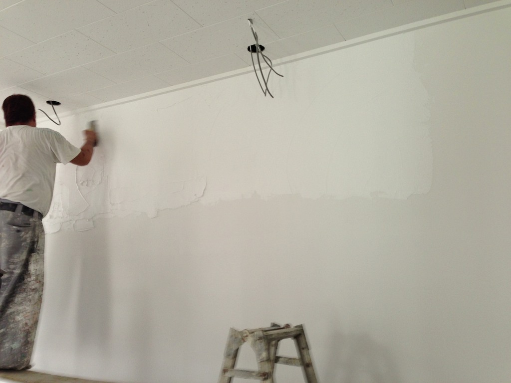 この建物の歴史や、以前の床の接着剤の跡がそのまま出てます。